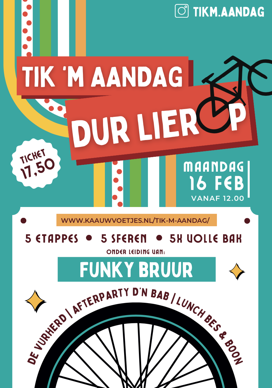 Dit jaar sprinten we door vijf etappes, elk met een compleet eigen sfeer, muziek en verrassingen. Van start tot finish is het één grote ronde door alles wat Lierup te bieden heeft. Na de heroïsche Holy Monday van vorig seizoen staan we dit jaar weer met frisse benen aan de start – ditmaal onder leiding van onze kersverse kopman: Prins Rik d’n Uurste!